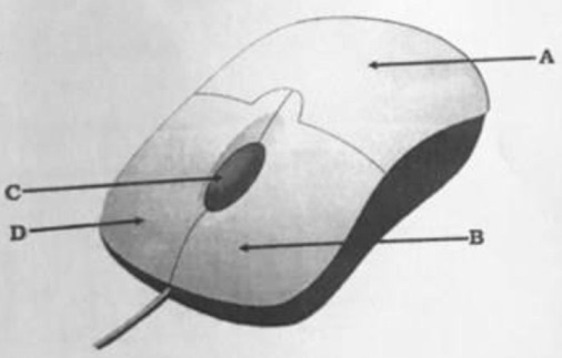 b) Write down the name of the parts of Figure 1 labelled A, B, C and D.