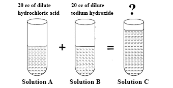In an experiment, equal volumes of dilute hydrochloric acid (solution A) and dilute sodium hydroxide (solution B) are mixed together to form solution C.