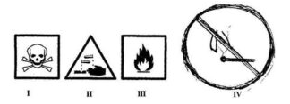 The diagram below illustrates hazard symbols labelled I, II, III and IV.