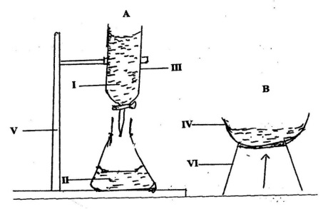 The diagrams below is a set-up for preparation of common salt in the laboratory.