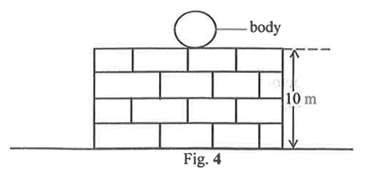 Fig. 4 is an illustration of a body of mass 20 kg placed on top of a wall of height 10 m. Calculate the energy of the body.